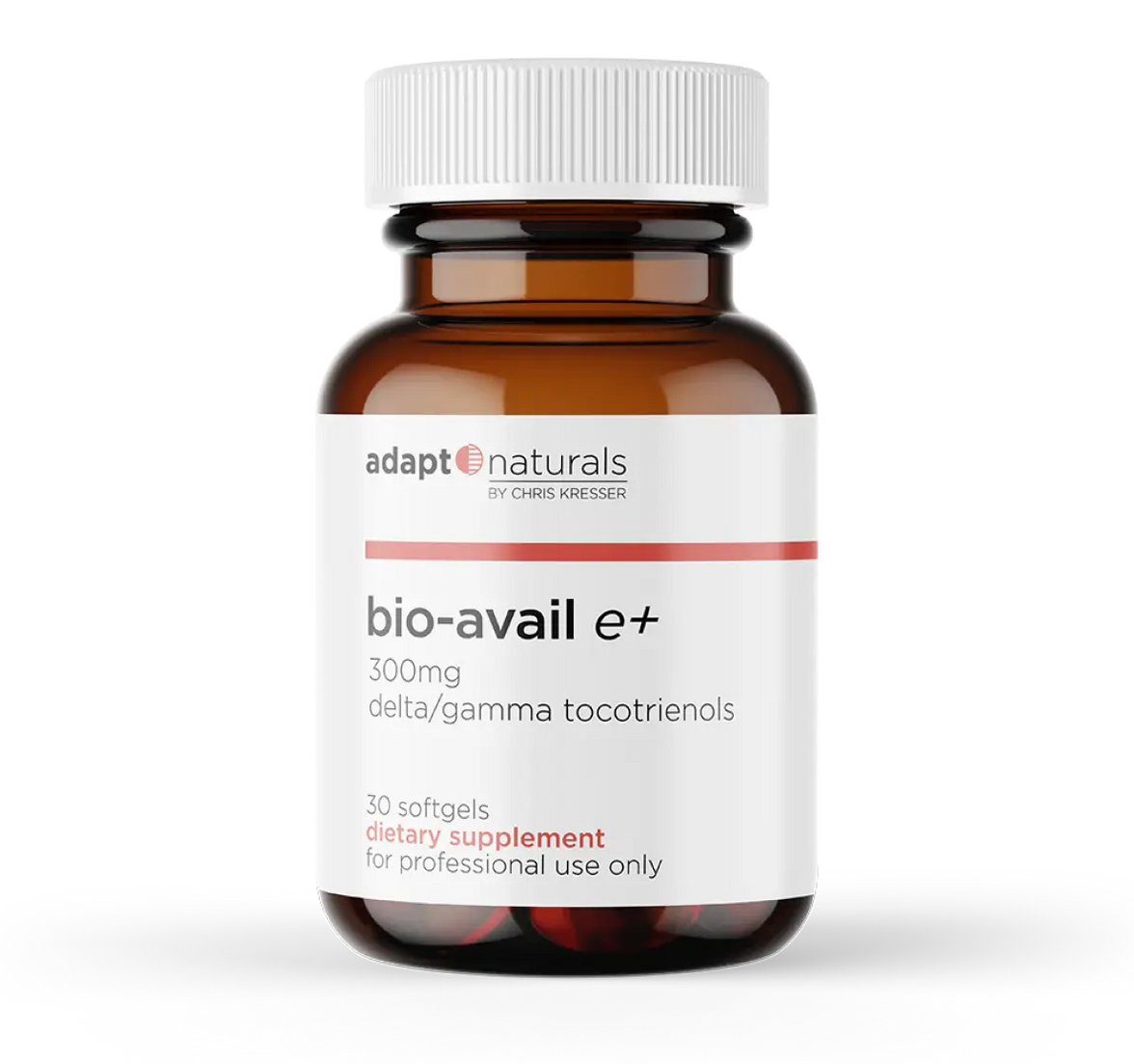 Bio-Avail E+ contains 300 mg of delta- and gamma-tocotrienols, a recently discovered form of vitamin E that has greater health benefits than alpha-tocopherol—and none of its long-term risks.