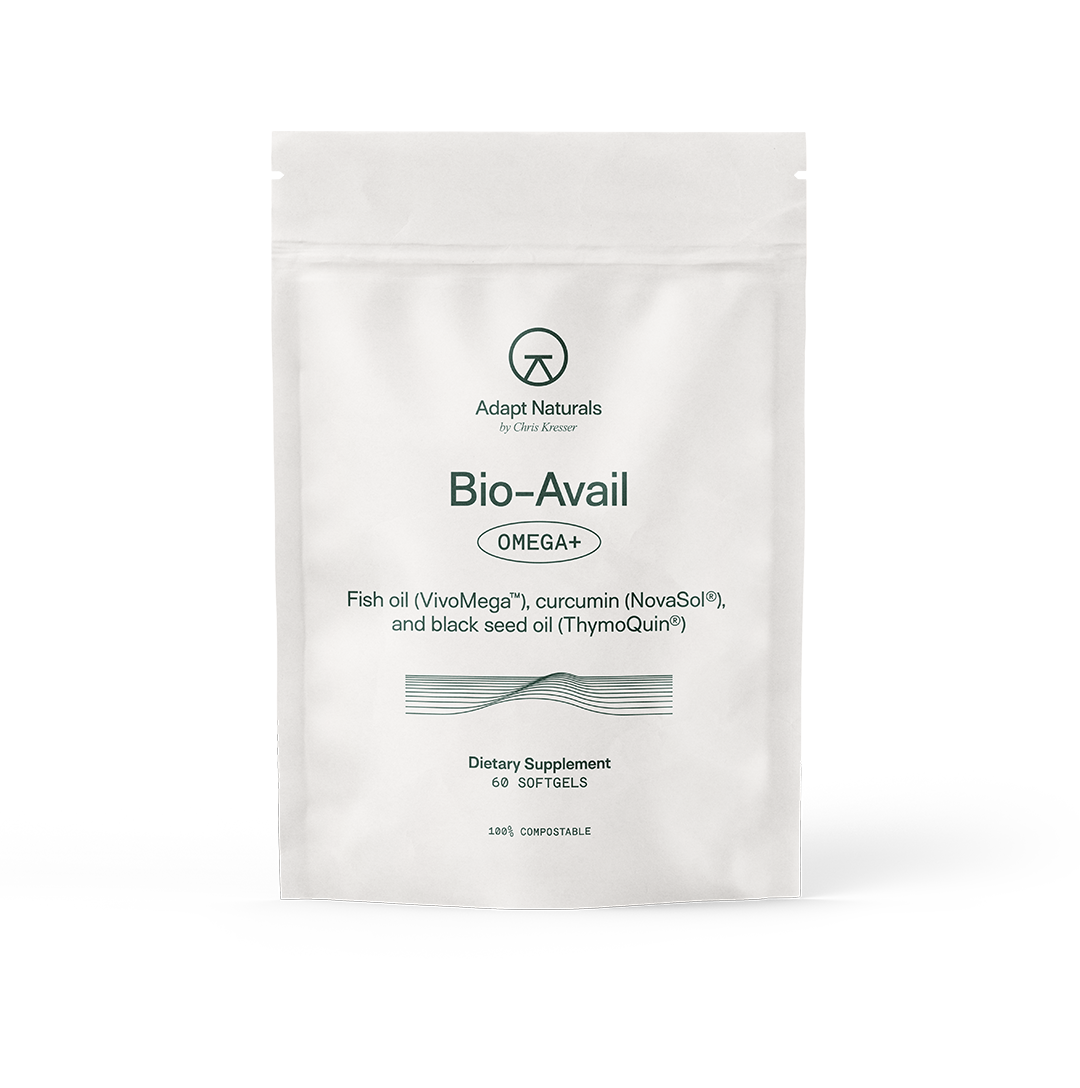 Bio-Avail Omega+ combines the purest and freshest fish oil with the most bioavailable forms of curcumin and black seed oil so you can get the incredible benefits of these nutrients in a single, two soft-gel serving.