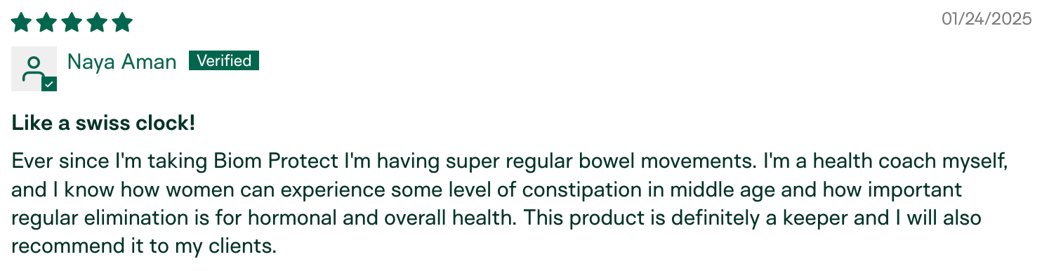 "I tried countless supplements but nothing helped. After just a few weeks on Biome Protect, my painful gas is completely gone. I also suffer from chronic fatigue, and I've noticed an improvement in my energy levels. I need fewer breaks throughout the day."