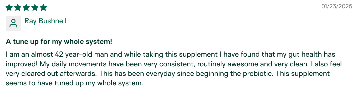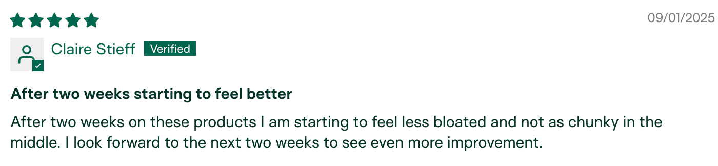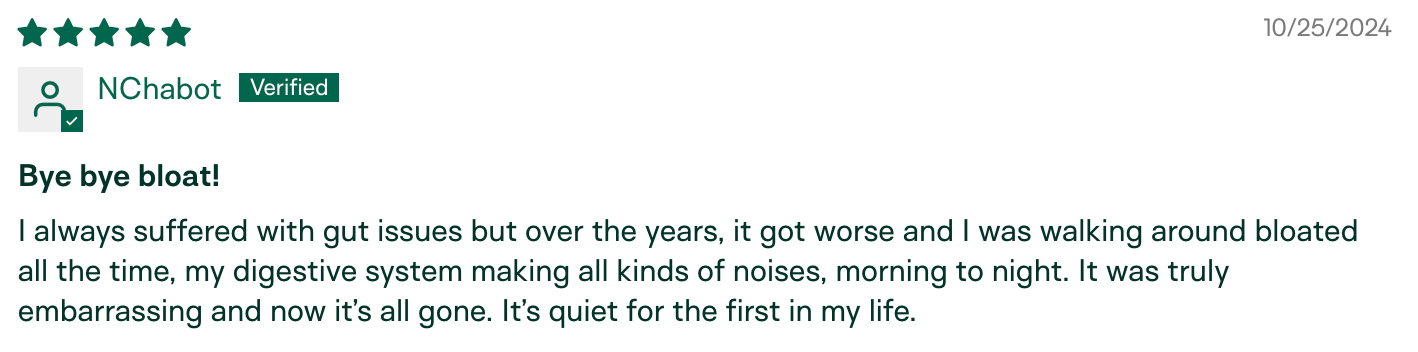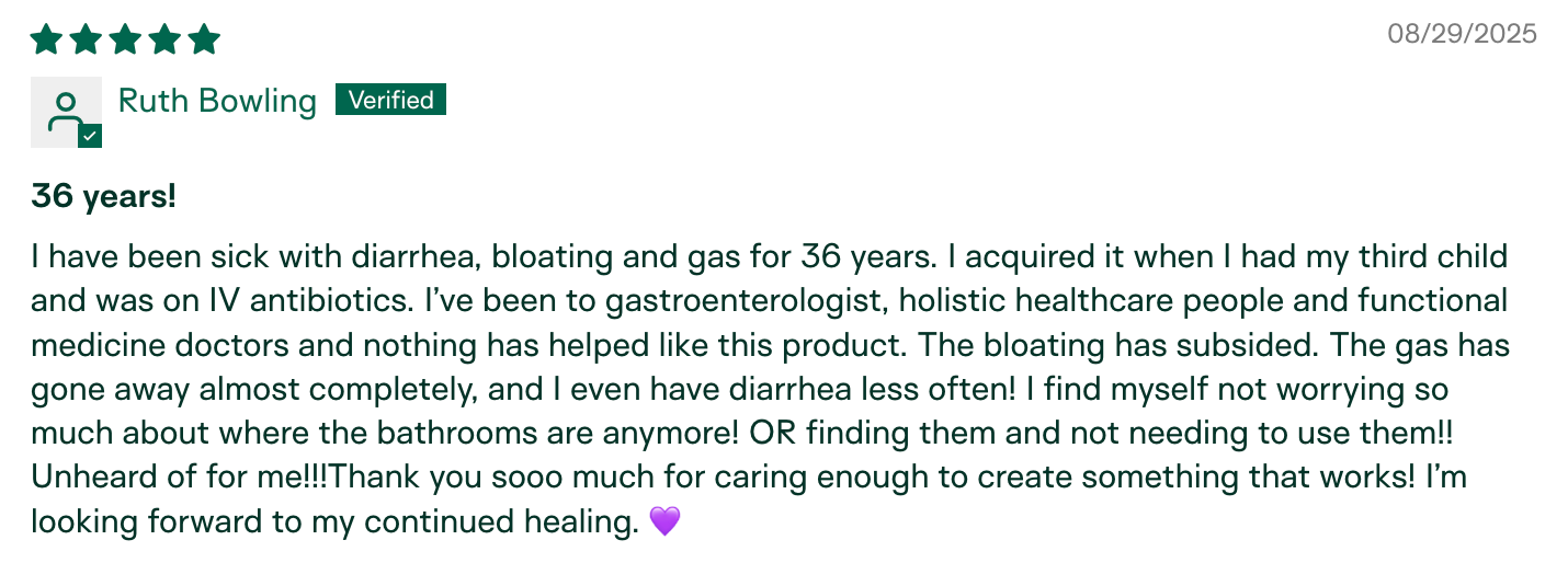 Less bloating. Regular bowel movements. Clearer thinking. Our reviews are full of 3-day transformations and 1-week breakthroughs.