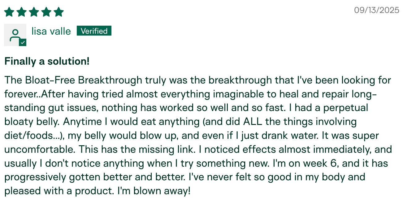 Many women feel better almost immediately. Less gas. Less heaviness. Our reviews are full of 5-day transformations and 2-week breakthroughs.