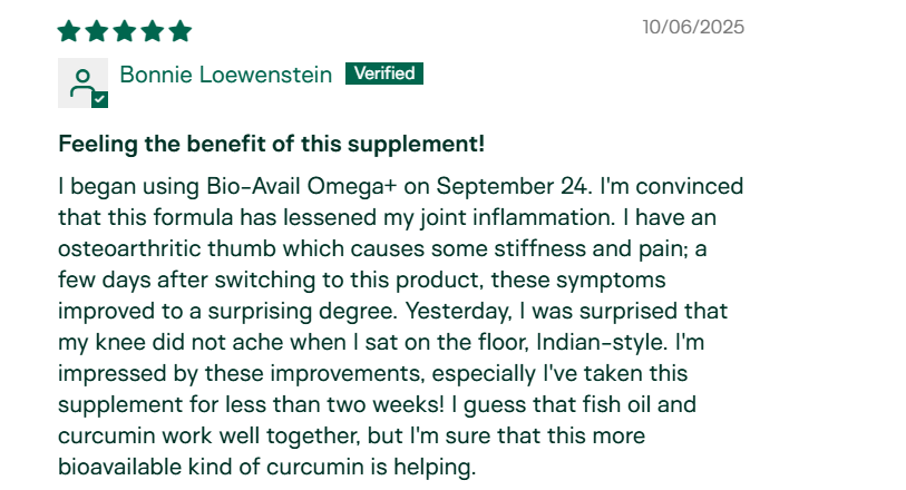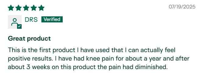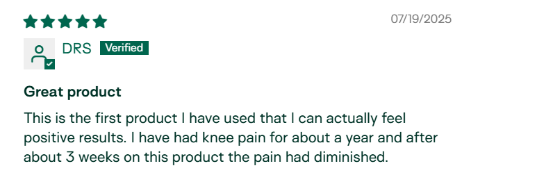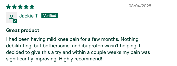 "Around 6 weeks into taking this supplement I noticed I had no more joint pain at night. It just stopped. I've been taking this daily for 6 months now and feel amazing. I'm 62 and I weight train 4-5 times a week. I recover faster and feel amazing." – Ann Pearson, Verified Customer
