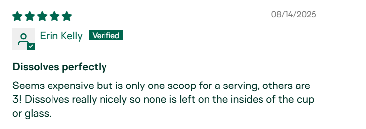 "I can't tell you how much it puts my mind at ease to know that I'm consuming a healthy, uncontaminated collagen. I know I can trust this brand. Such an amazing feeling! An extra added bonus - there is literally no flavor. No nasty aftertaste." – Peg V, Verified Customer