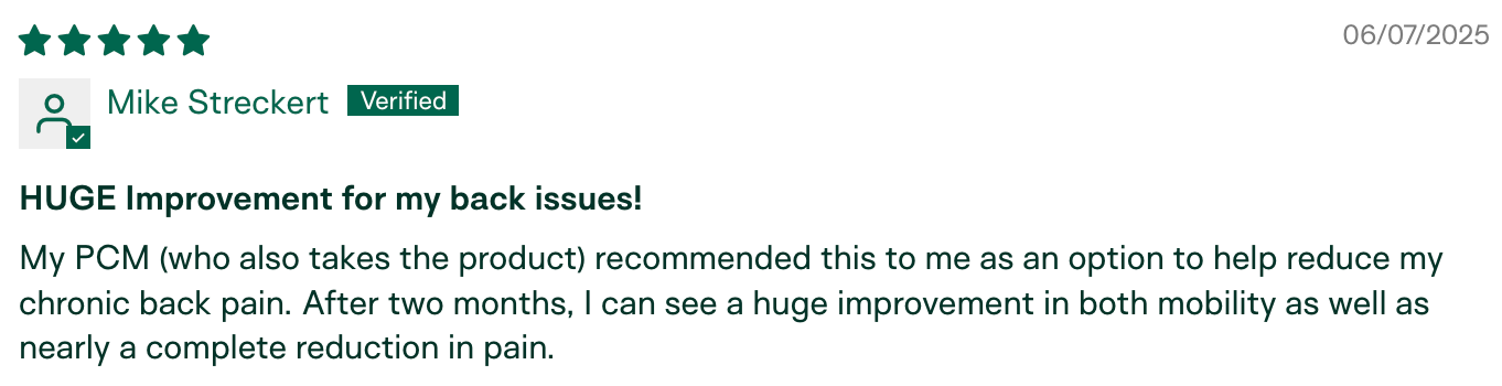 "After two months, I can see a huge improvement in both mobility as well as nearly a complete reduction in pain." – Mike Streckert, Verified Customer