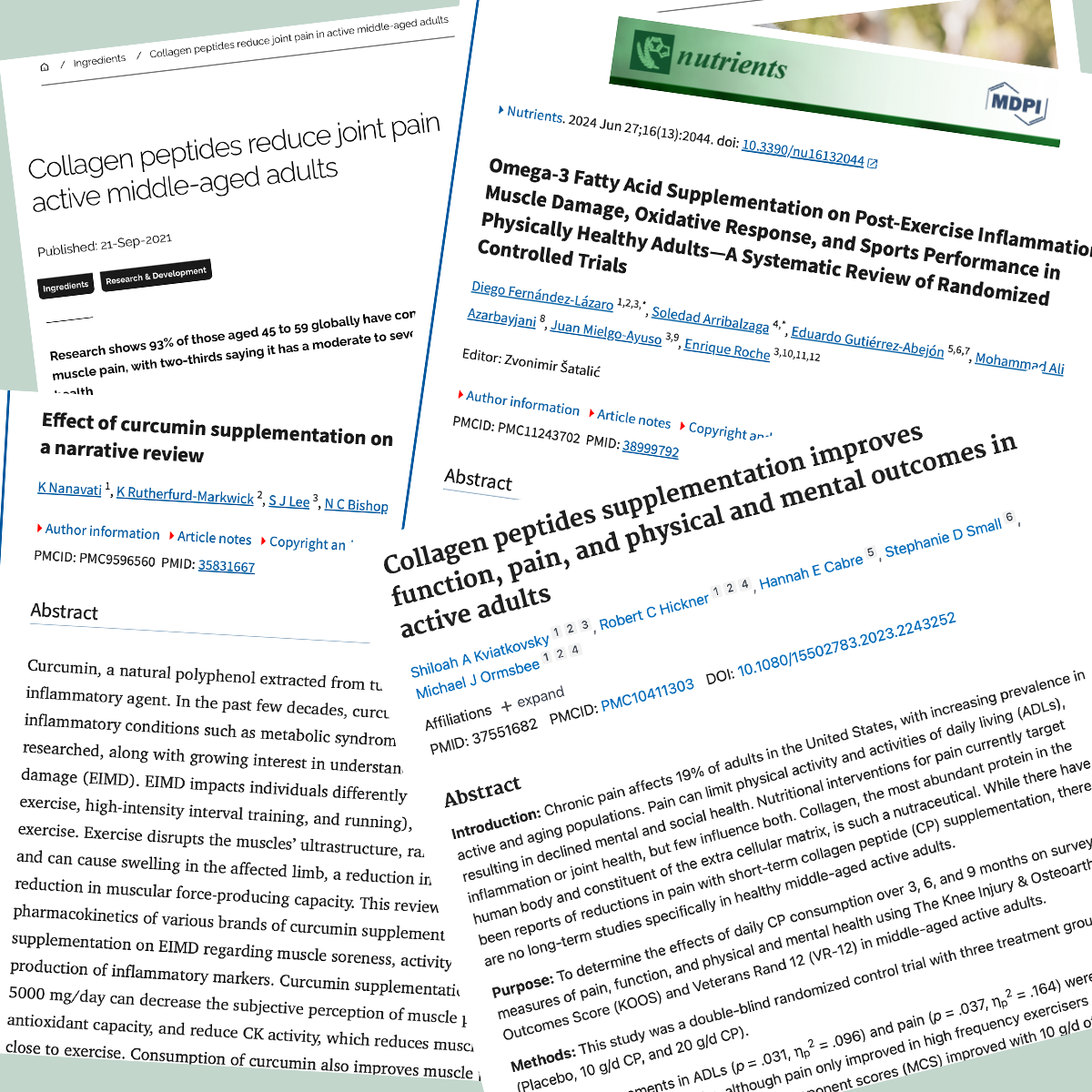 Fish oil and curcumin calm inflammation but don't rebuild structure. Collagen alone provides building blocks but can't stop the constant breakdown. You need both working together.