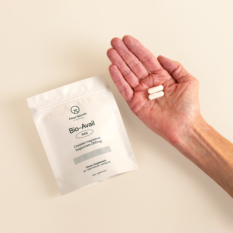 Each 2-capsule serving of Bio-Avail Mag contains 300 mg of magnesium in a chelated formula—meaning it gets absorbed quickly and is far less likely to cause gastrointestinal symptoms like loose stools and bloating, unlike inferior forms of magnesium.