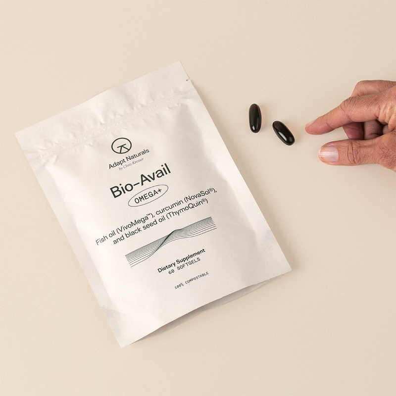 Bio-Avail Omega+ combines the purest and freshest fish oil with the most bioavailable forms of curcumin and black seed oil, so you can get the incredible benefits of these nutrients in a single, two soft-gel serving.
